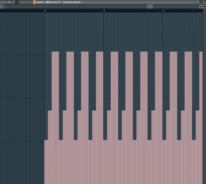 'MIDI pseudo echo' used for this song; channels volume used for sidechain effect, so it sounds more dancy.