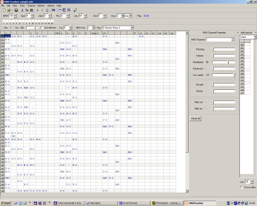 MIDI Tracker is music editor with ability to import and export songs to MIDI format, support of 128 instruments, assigning volume and tracks count, playing and editing from PC keyboard.